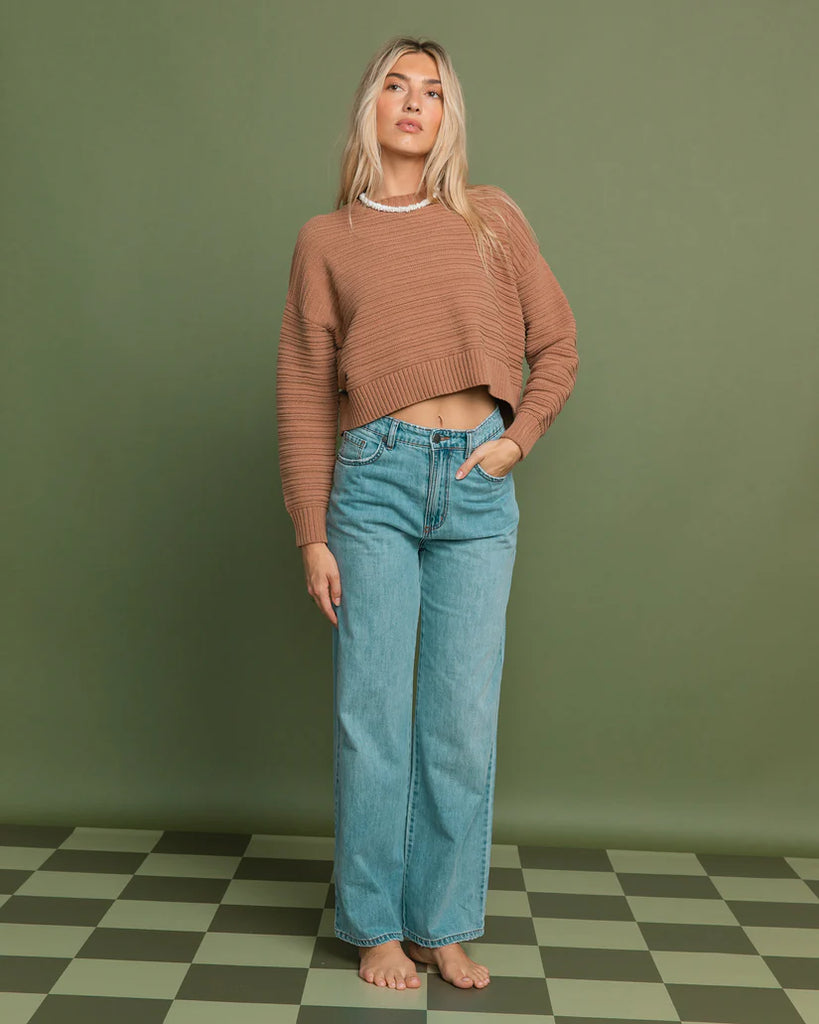 Cozy up in the Evie Sweater, a relaxed-fit pullover that brings casual comfy style to chilly days. The corded rib stitch and poly yarn fabric offer soft texture, while the scoop neck adds a feminine touch. Perfect for easy layering and everyday wear.