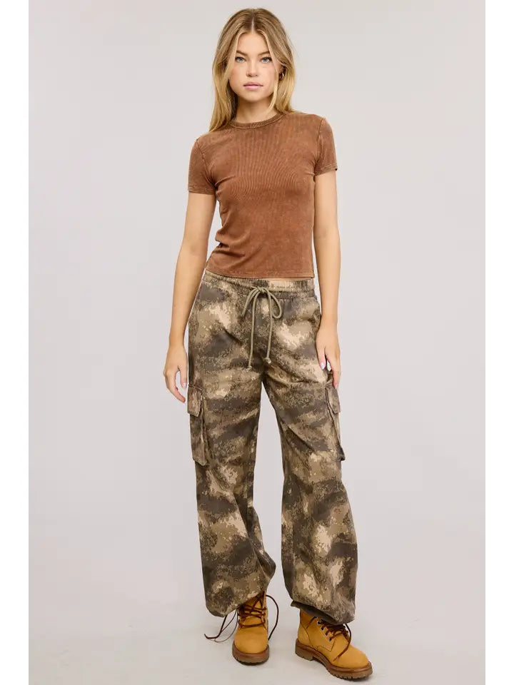Garment Dye ribbed knit short sleeve top with crew neckline, snug and regular-length fit. Each piece may vary due to the garment-dye wash. Women's top, ribbed top, essential, seamless, women's t-shirt, crew neck, slim fit, perfect for all year around.