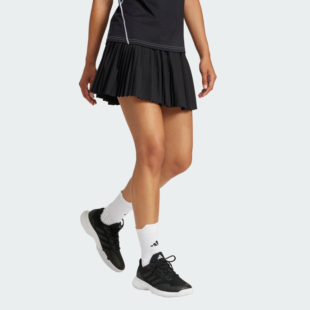 Add a dash of extra style to your play in this Club tennis skirt from adidas. Above those eye-catching plissé pleats, a wide elastic waist makes for comfortable movement. CLIMACOOL wicks and disperses sweat for cool, dry and distraction-free performance. Integrated inner leggings offer the coverage you need for confident play.