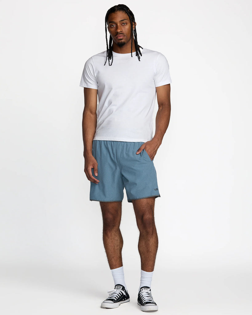 Combining heritage design and performance-enhancing comfort, the RVCA Yogger Stretch Elastic Waist Athletic Shorts 17" have you covered. These men's athletic shorts are made from stretch polyester and feature an Elastic Waist drawcord waist, slightly scalloped hem with split side vent and pockets throughout. Topped with RVCA VA branding.