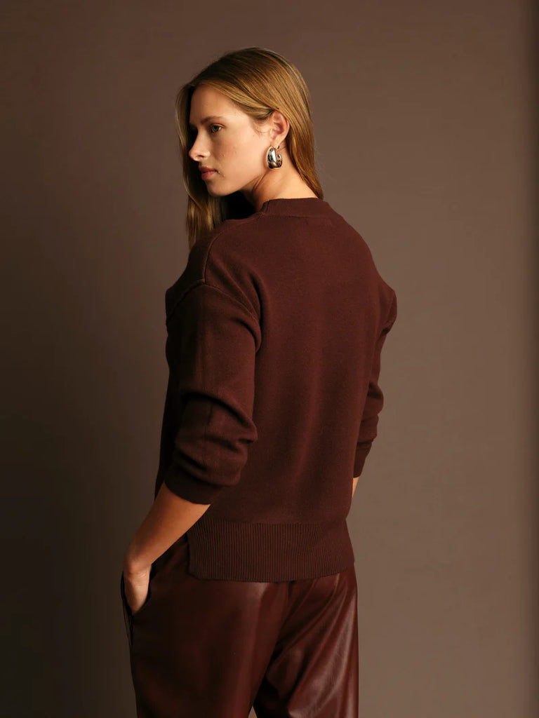 Viscose blend sweater with crew neckline and long sleeves. Detail of visible seams