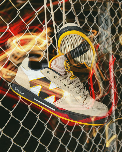 Emerica is proud to present this year’s skateshop day colorway of the OG-1. The Reissued OG-1 Features a Bulletproof Rubber Cupsole, Internal EVA Midsole, And a Suede/Mesh Upper. Add In Triple Stitch Reinforcements in High-Wear Zones for Added Durability, and Classic Herringbone Thread for Grip. Just How You Remember It. Made for the Fans. Made for skateboarding.