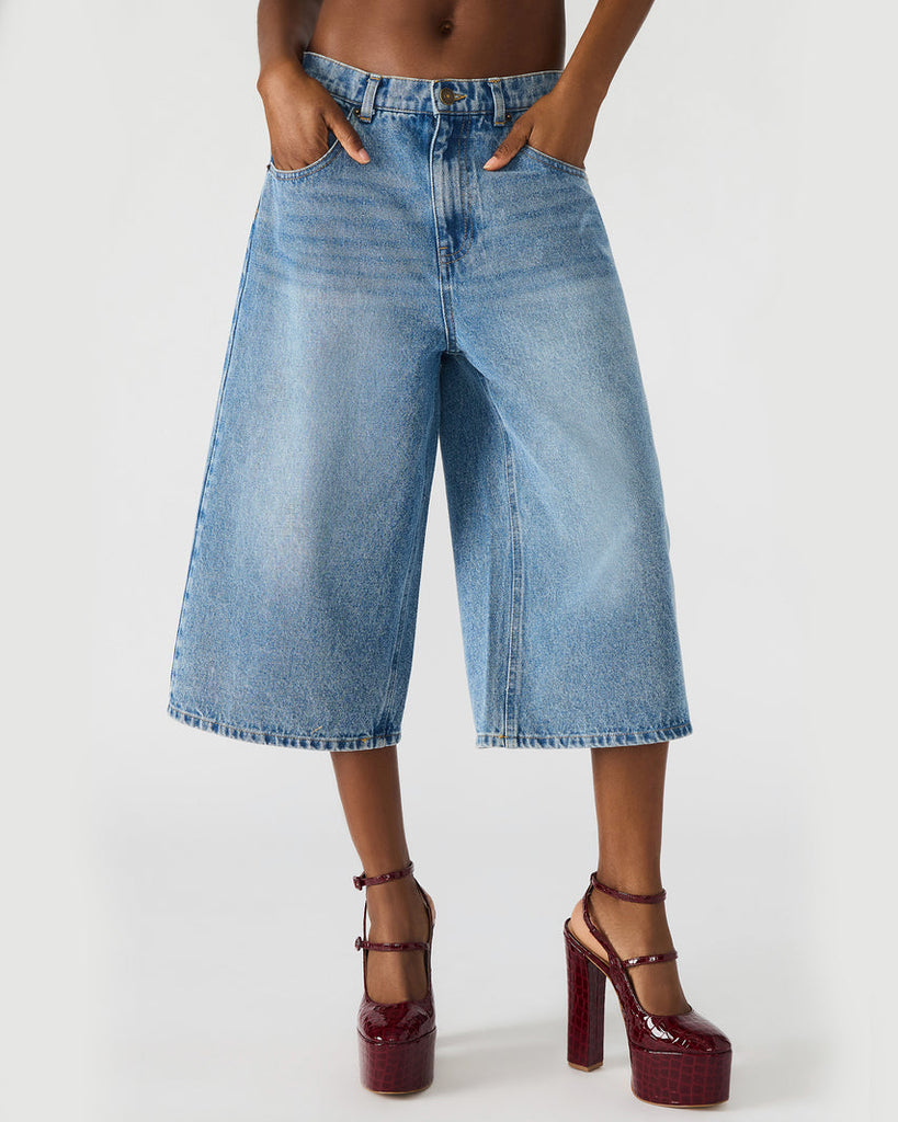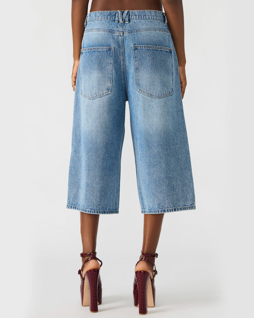 These long BREA denim shorts feature a secure button and zipper closure for a comfortable fit. Designed with functional front and back pockets, they combine practicality with classic style, making them a versatile addition to any wardrobe. Crafted for durability and everyday wear, they offer both comfort and timeless appeal.