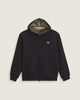 Face the elements in the Dover Thermal Zip Hoodie, featuring thermal lining to help reduce heat transfer to keep you warm.  With a camo print interior and bold black exterior, the full-length front zipper offers adaptability while embroidered artwork of the Vans logo adds premium detailing.