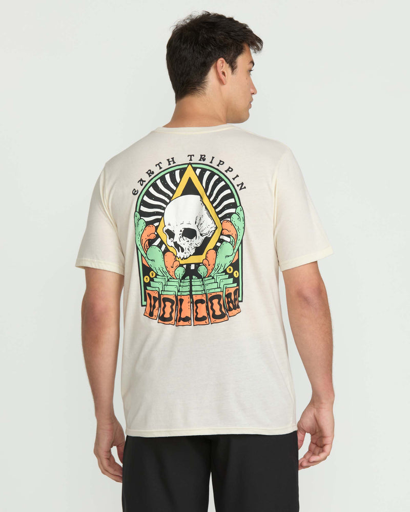 A stylish staple with all-day comfort. Soft heathered blend keeps you cool; modern fit flatters. Lived-in screen print graphic; subtle branding details.