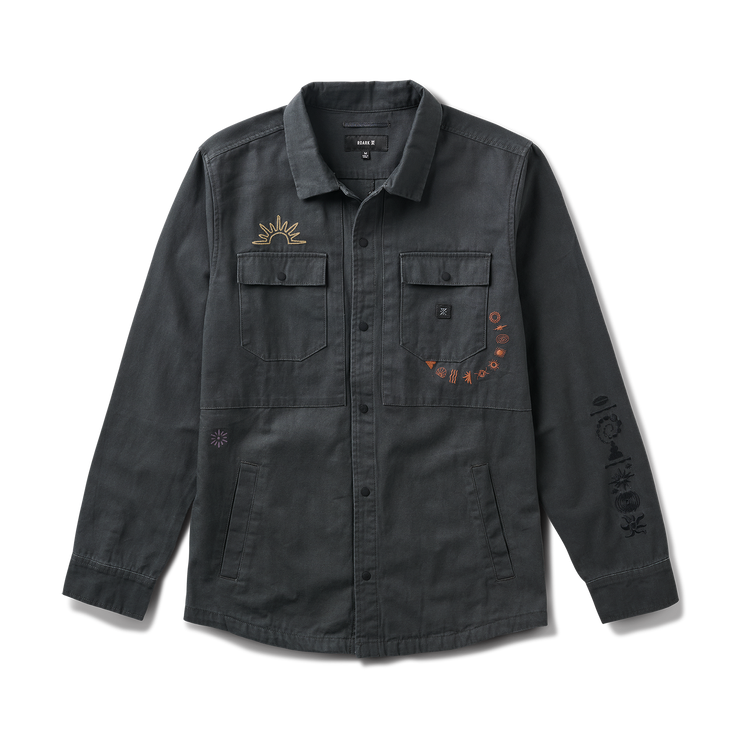 Introducing our latest addition to our contemporary casual wear collection. It is the lightweight version of our original Hebrides Jacket. Drawing inspiration from traditional workwear styling, the Hebrides Unlined is our modern take on the classic overcoat. Crafted from high-quality, durable fabric in a versatile olive green hue, it features unique, bright sun and playful flower patch embroidery that adds a touch of artistic flair. The relaxed fit allows for ease of movement, making it perfect for both outdoor adventures and casual urban outings. Made from 100% Organic Cotton Canvas, with reinforced elbow panels.
