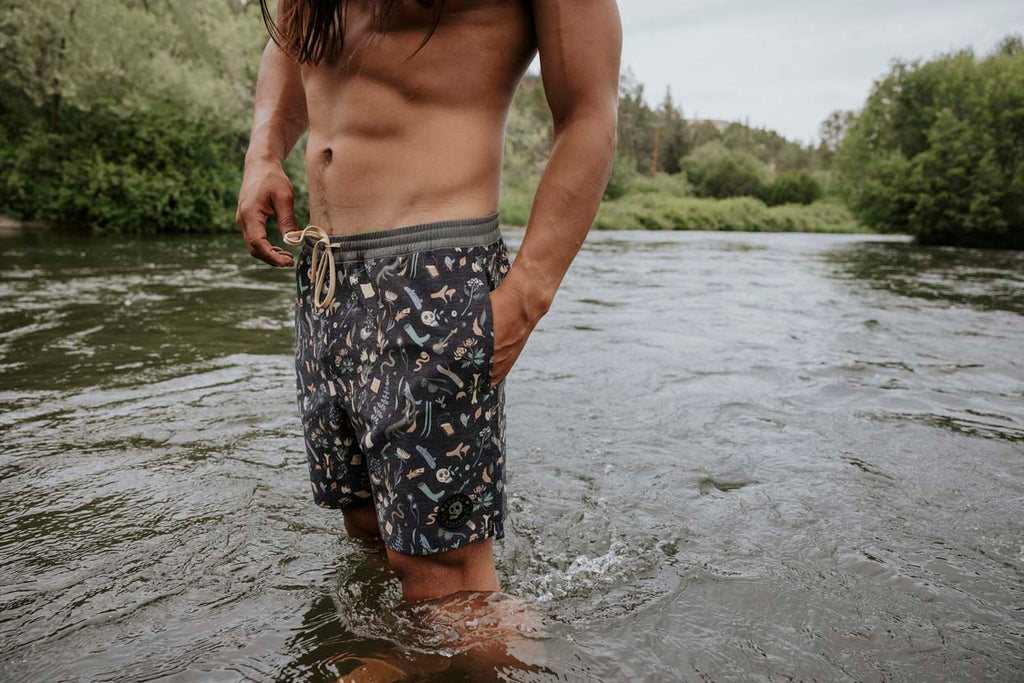 The Shorey Series of trunks are Roark's elastic waist, above the knee, ultimate kick back trunks, made for ideal comfort from a recycled polyester/hemp blend.