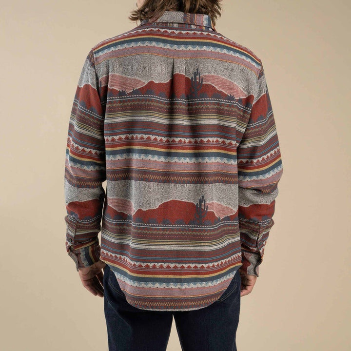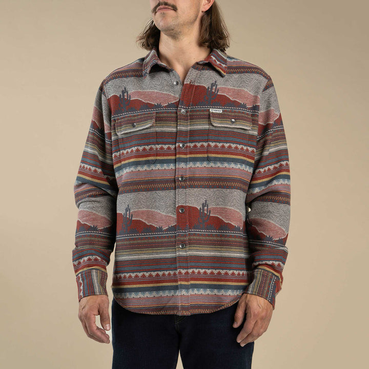 Boquillas Shirt is designed off the patterns and vibes of vintage textiles found across the Southwest. This shirt can be layered in the cool weather, worn on its own, or used as a blanket in the odd emergency situation where you need a southwestern rug. Ok not really, it's too soft and slick to be trampled on.