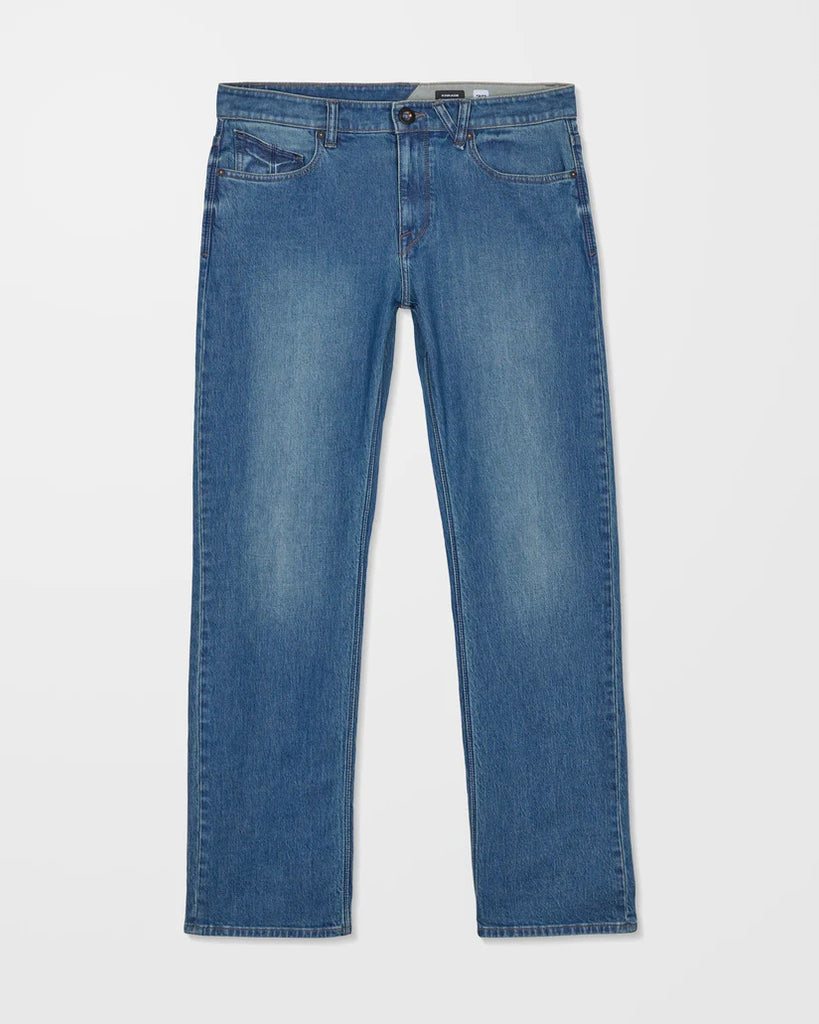 Kinkade Denim brings a dry vintage indigo with Tokyo-found vibes, heavy thigh and knee sanding, and a no-nonsense regular fit straight leg (17-inch opening, 32-inch inseam). Our Water Aware process cuts water and uses foam balls over pumice. Signature Volcom jeans details included.