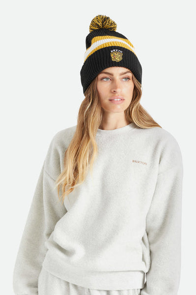 Brixton Kit Pom Beanie - Black Off White/Bright Gold