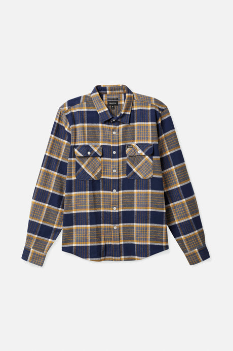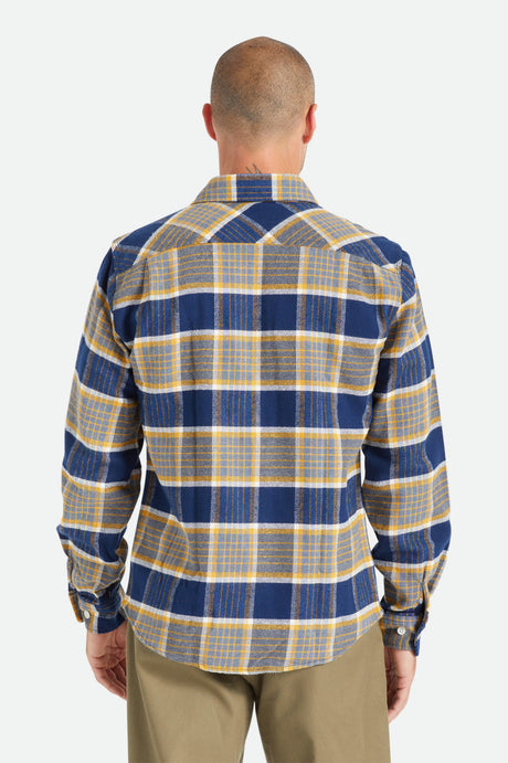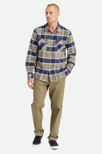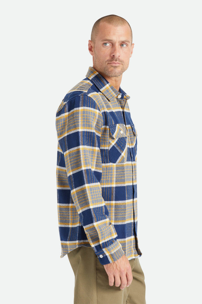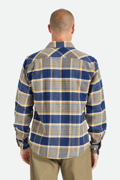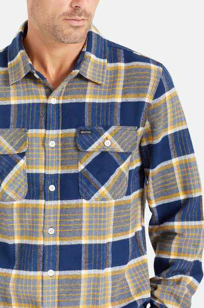 Brixton Men's Bowery Long Sleeve Flannel - Moonlit Ocean Bright Gold Off White
