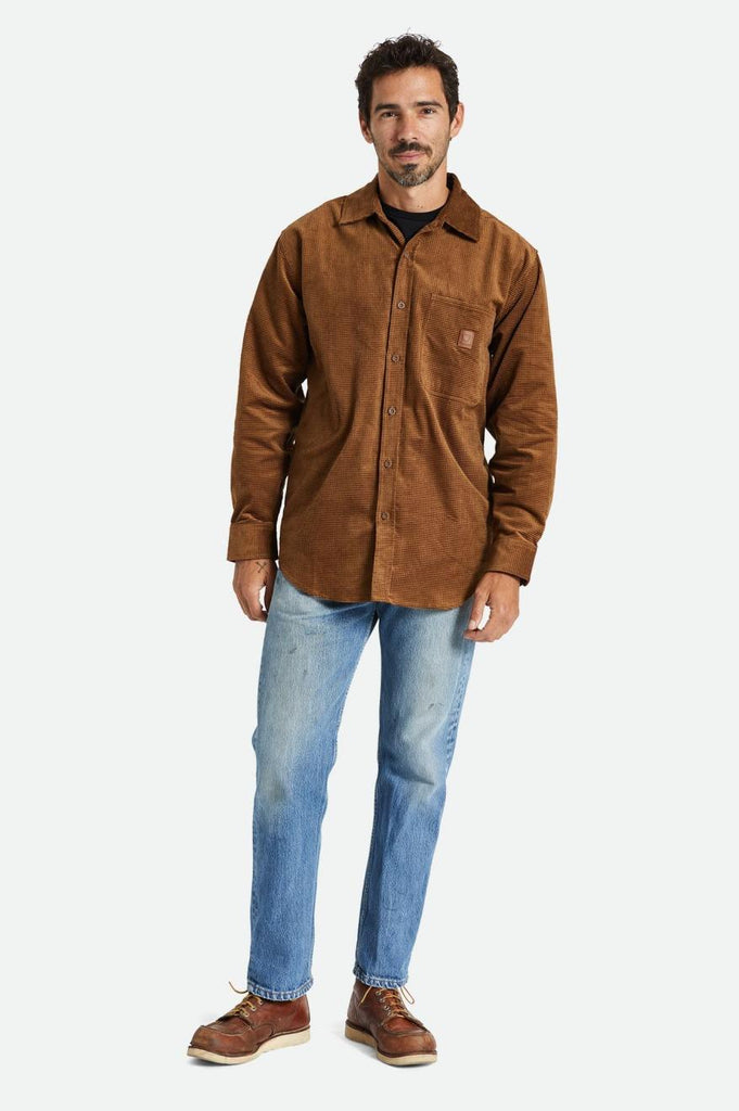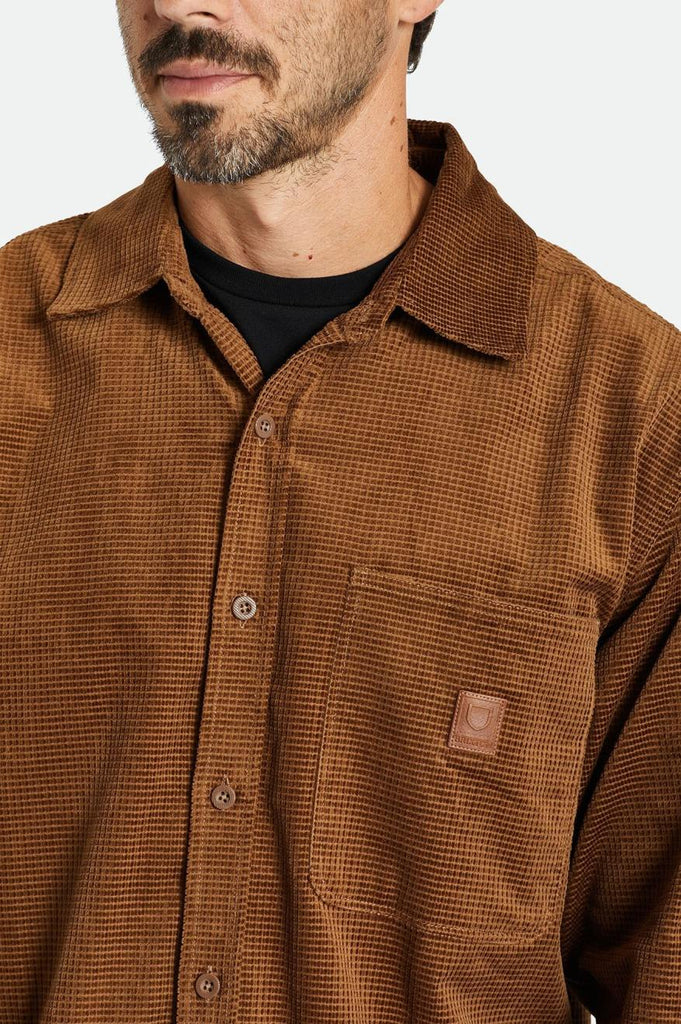 Brixton Men's Porter Long Sleeve Waffle Corduroy Shirt - Bison
