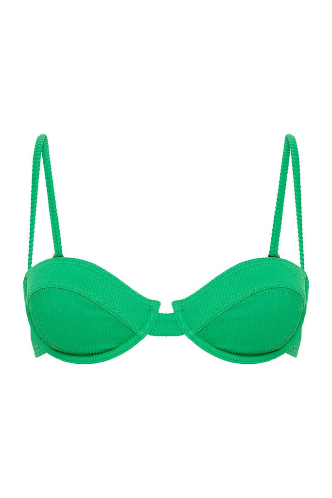 \In a stunning emerald green colourway, this lovely bra-style bikini top adds support and comfort to your beach wardrobe. Work it on the sand with the coordinating Mylo brief.