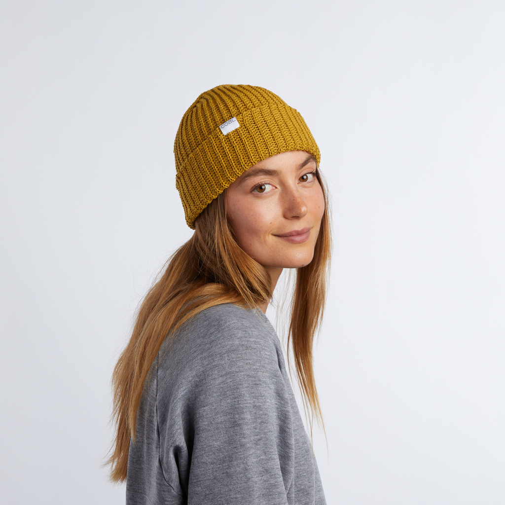 The Eddie is a classic rib knit beanie made with a recycled cotton yarn, created from the scraps of the apparel manufacturing process. The Eddie is a more loosely knit hat great for larger noggins or a more roomy fit, and the recycled cotton is durable for easier care. Beanie can be worn rolled, folded, or un-cuffed for a slouchy fit.