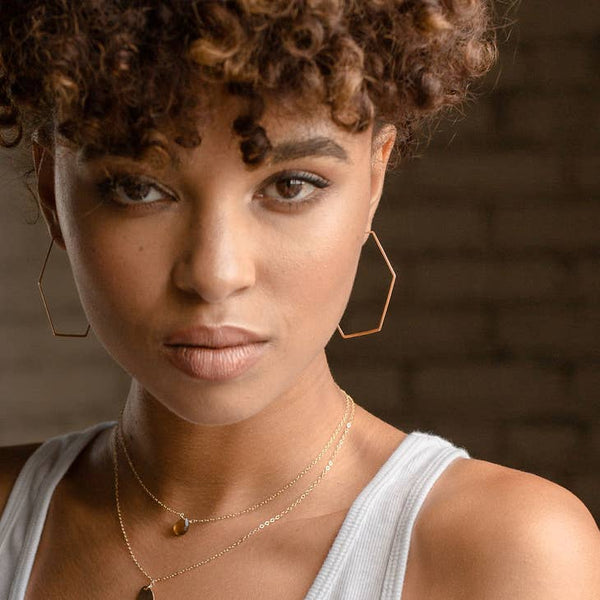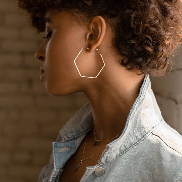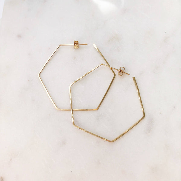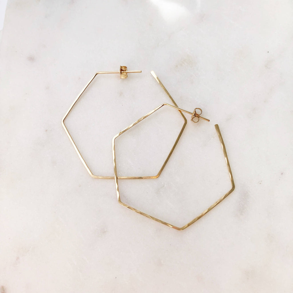 Both sweet + edgy, our Honey Hoops are worked into a hexagon shape and lightly hammered to a pretty shine.