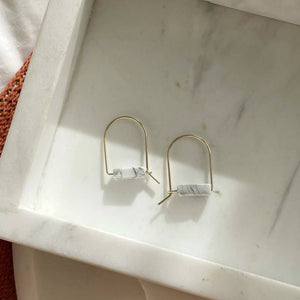 A simple + modern arch shaped earrings embellished with a white howlite gemstone.
