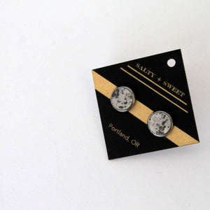 Lightweight faux white granite set in a silver bevel. A very neutral and wearable option with the added bonus of being inspired by natural elements (in this case: stone).