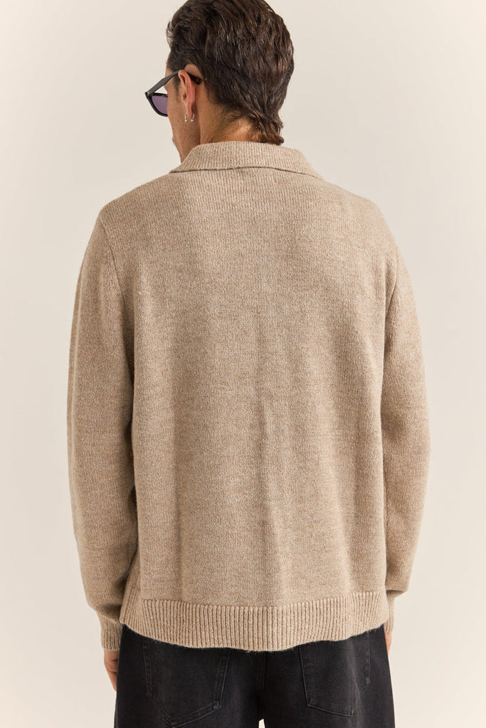 The Mohair Button Up Knit, washed for a vintage hand feel, is our latest collared knit polo. It's collar, sleeves and waist come ribbed for a more comfortable fit, designed as a dual attempt at style and warmth. Made with a Mohair blend and button down enclosures, the Mohair Button Up Knit is layering essential.