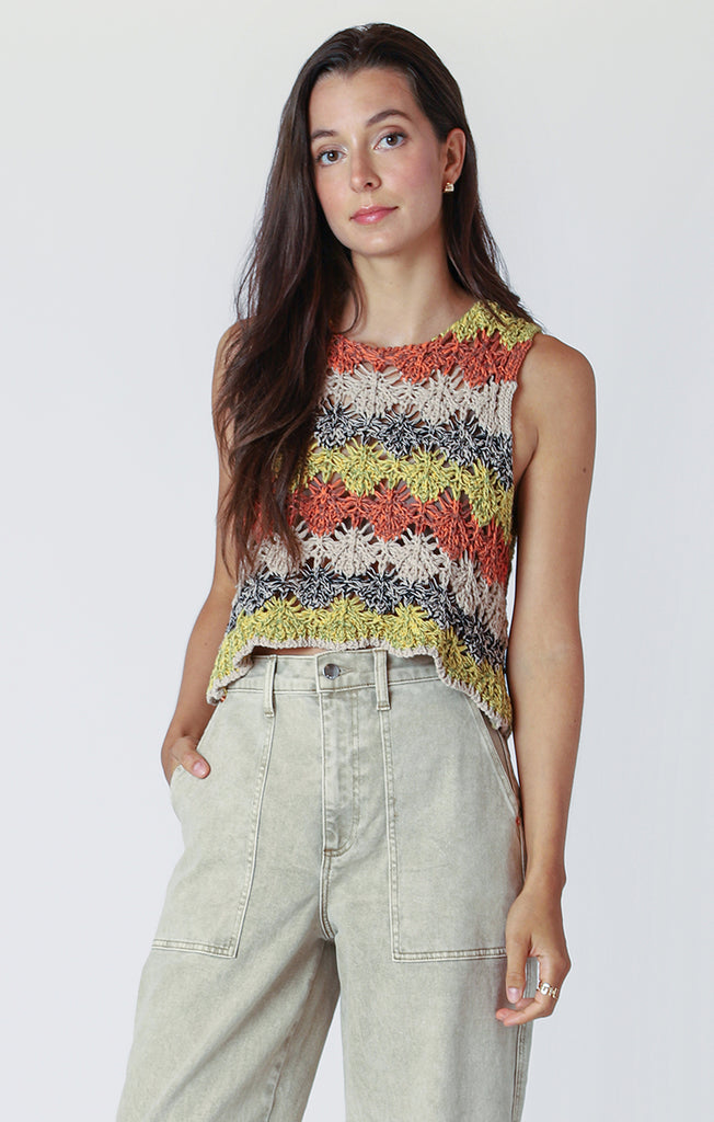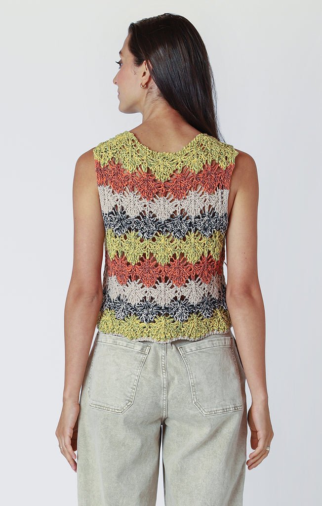 Introducing your new summer must-have, the Open Stitch Knit Top. This tank top features an open stitch design, perfect for keeping you cool and stylish all season long. Breathable and lightweight, it's the perfect addition to your warm weather wardrobe.