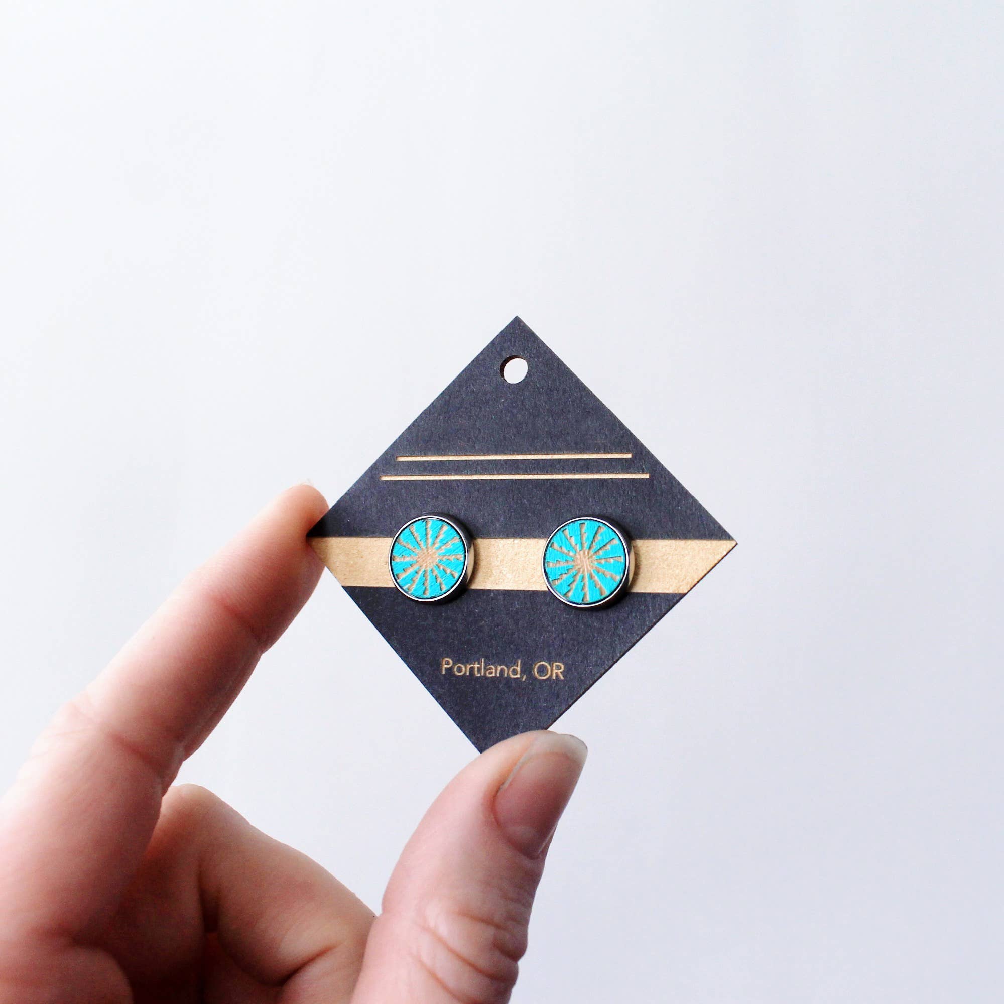 Lightweight studs inspired by clean lines and architectural details. Real birch set in a nickel-free, lead-free cabochon.