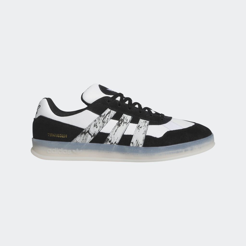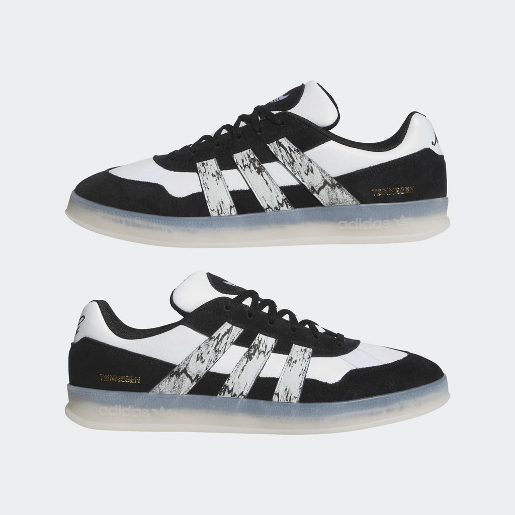 Whether behind the lens or documenting his latest evolution of wizard tech, Gustav Tønnesen's creativity has become a visual signature in skateboarding. The Aloha Super X Gustav Tønnesen customizes Mark Gonzales' fencing-inspired Aloha Super with personal details reflecting Gustav's unique point-of-view on skateboarding. Built with the Aloha Super's staple cupsole construction the Aloha Super X Gustav Tønnesen plays with contrast, adding embroidered details, custom insole artwork, unique marbleized 3-Stripes, and custom gold foil Tønnesen branding.
