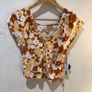 It's Still You, you're just well dressed. The Still You Woven is a flutter woven wrap top in a fresh floral