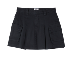 CARGO POCKETS AT SIDES WITH HIDDEN SNAP FLAP CLOSURE.