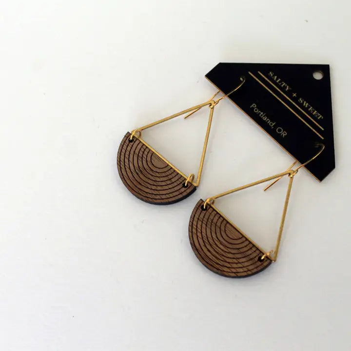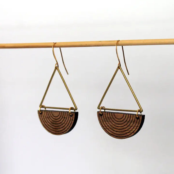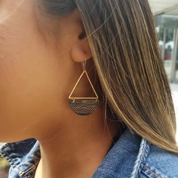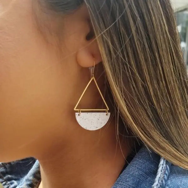 Crafted to embody clean lines and elegance, the Half Moon earring designs showcase arched faux stone on a delicate brass triangle finding. Lightweight comfort without compromising on style, these earrings are the ideal "everyday" accessory for effortless style.
