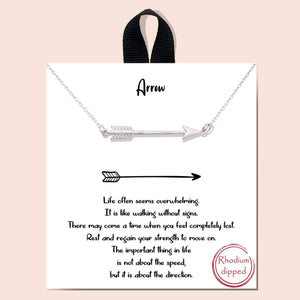 Fame accessories arrow pendant necklace. Approximate Length: 16" Made in Korea. Silver: Rhodium Dipped