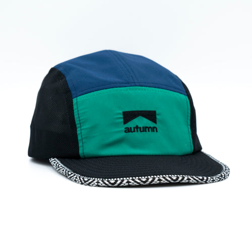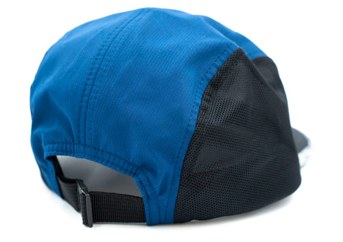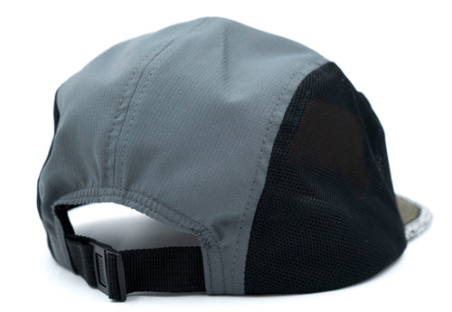 UNSTRUCTURED 5 panel FIT / WOVEN DETAIL ON BILL / MESH SIDE PANELS / EMBROIDERED MTN LOGO / CLIP CLOSURE