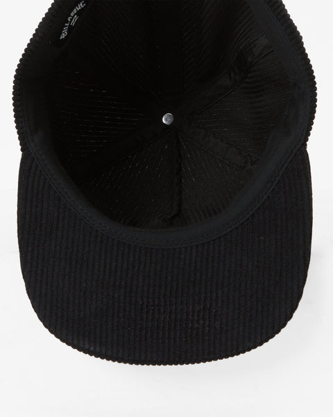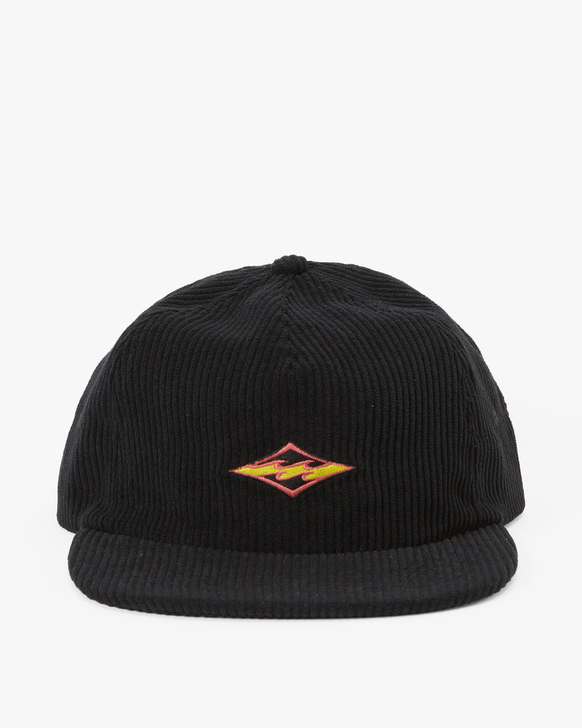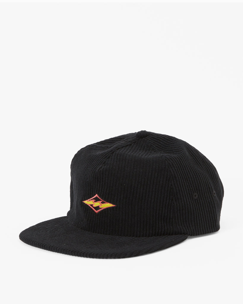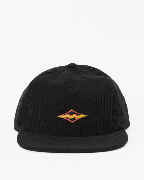 Experience comfort and style with our Billabong Heritage Baseball Hat. Crafted from eco-conscious recycled polyester cotton corduroy fabric, this 6-panel unstructured construction features a soft flat bill, matching fabric strap metal clasp closure and direct embroidery on centre front crown.