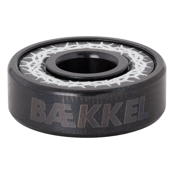 Bronson Speed Co Kevin Baekkel Pro G3 bearing featuring pro inspired graphic art theme printed with super durable ink and Baekkel & SKÅL laser etching on the outside bearing races. Go fast, stay fast with Bronson bearings!
