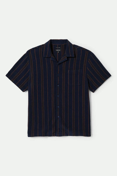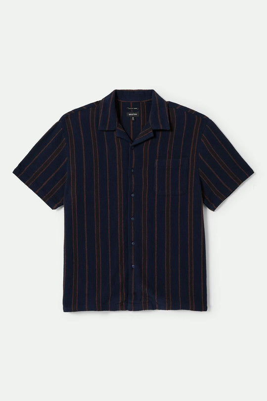 Bunker Waffle Stripe Short Sleeve Woven Shirt - Washed Navy Stripe