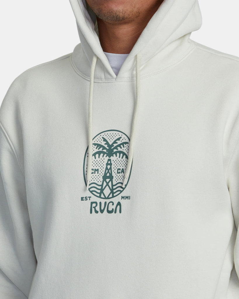Featuring legendary logo graphics at the chest and back, RVCA's Cliff Shore Hoodie is made of blended cotton with a soft, fleece feel. Complete with a kangaroo pouch pocket and ribbed cuffs.