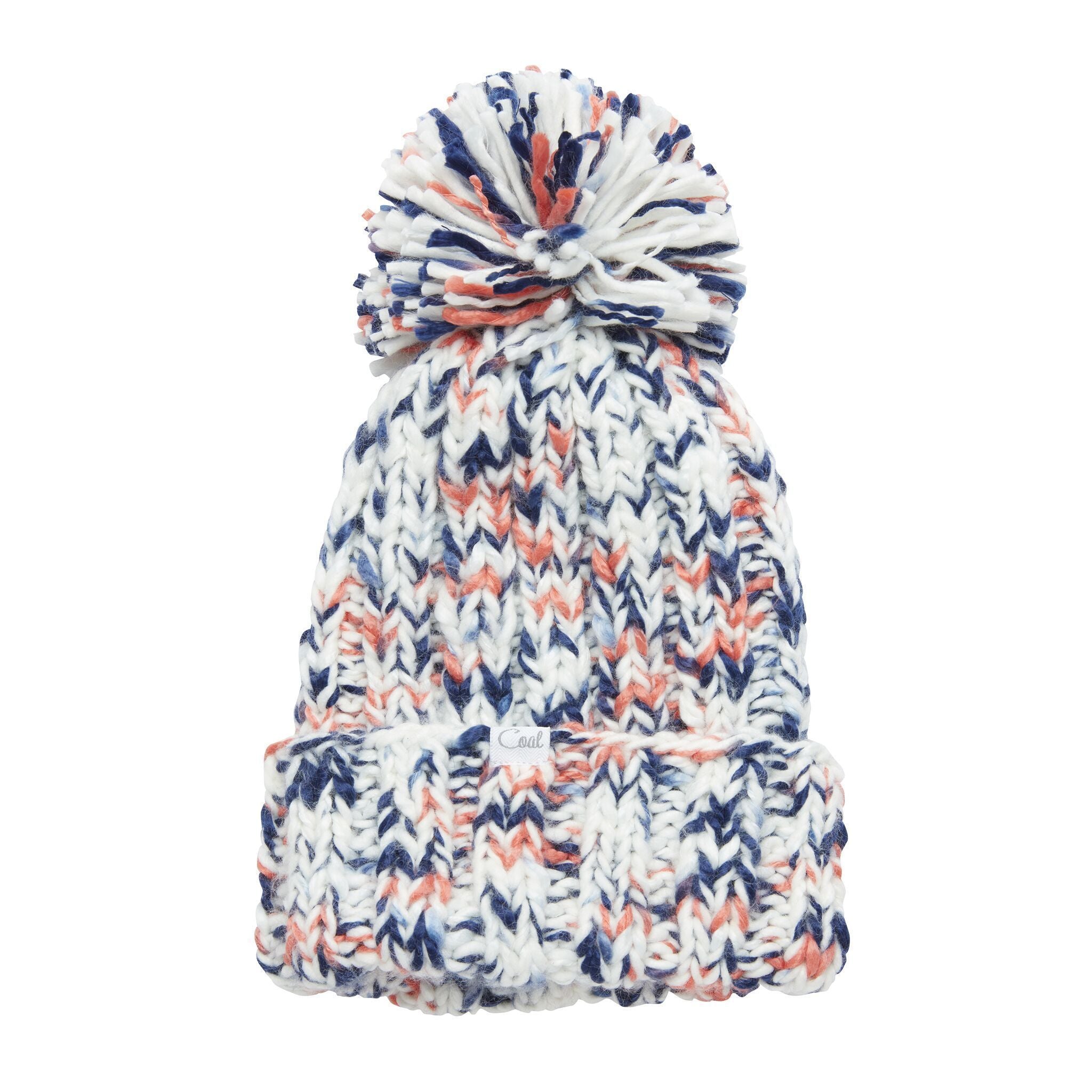 A handmade crochet ear warmer of chunky, silky acrylic yarn twisted with contrast colors and finished with a suede label.