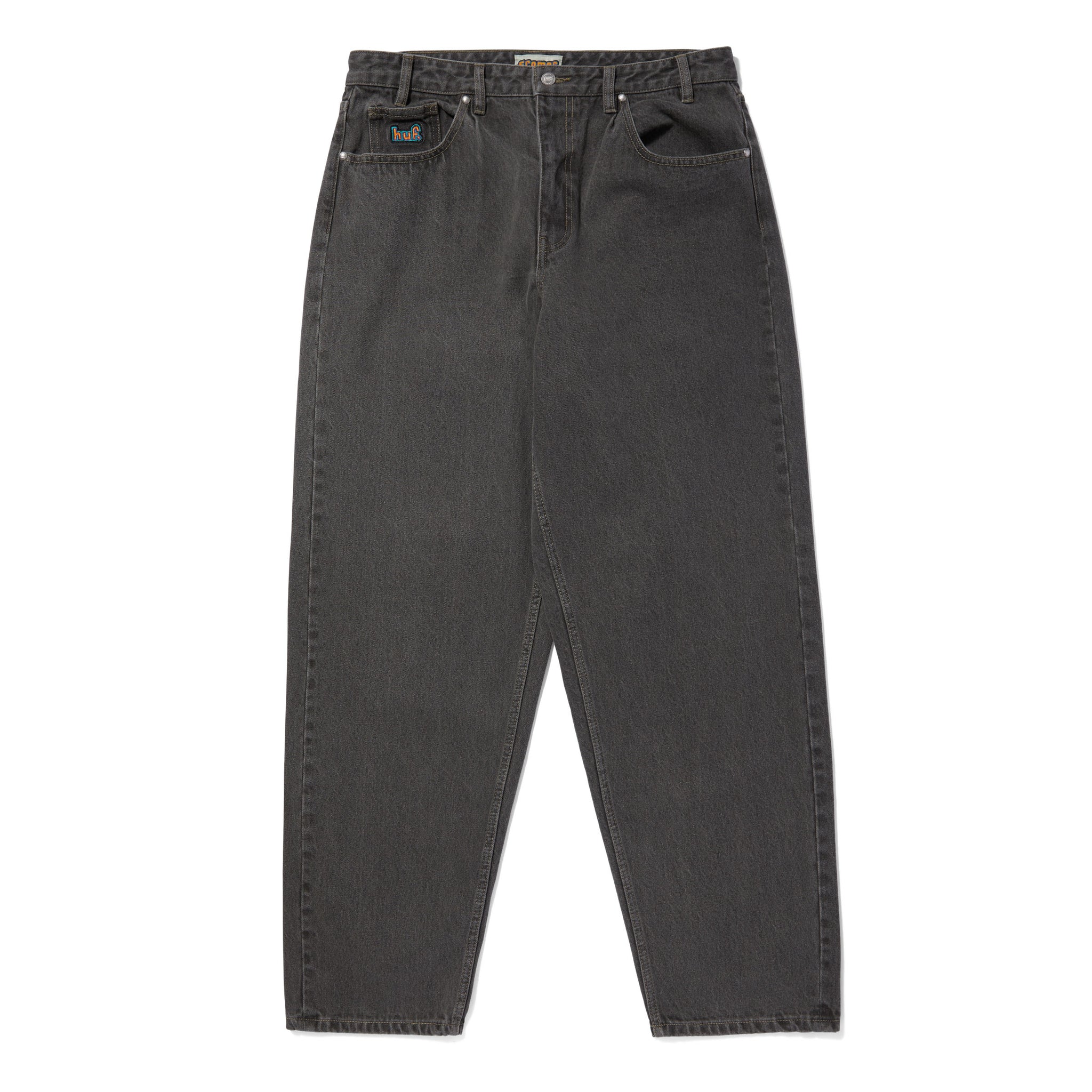 100% Cotton (14oz) denim skate pant• Baggy fit + Tapered Leg• Fixed waist denim 5-pocket jean designed with HUF team rider Brad Cromer• Standard 5-pocket jean w/ embroidered logo at coin pocket• HUF Worldwide-branded metal shank w/ zip closure• Double needle reinforced critical seam