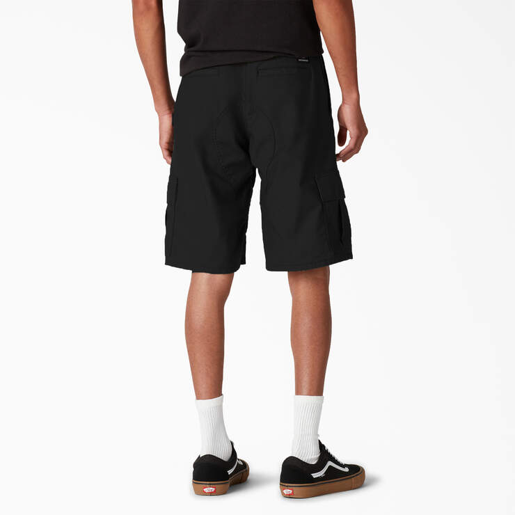 Dickies Skateboarding Cargo Shorts were built knowing your need for durable skate gear. The stretch ripstop fabrication allows for added movement in a durable construction that won’t rip or tear over time. An inseam gusset provides reinforced construction to avoid blow-outs while giving you a wider range of motion. The dual cargo pockets have been sewn down at the flap to keep your contents safe and secure while skating. Plus, a stay stitch at the rear pockets helps avoid bunching when you are active. Complete with Dickies Skateboarding interior red detailing and black herringbone pocket bags for comfort, these shorts also feature a strong metal button front closure that won’t give out when you bail.