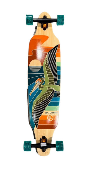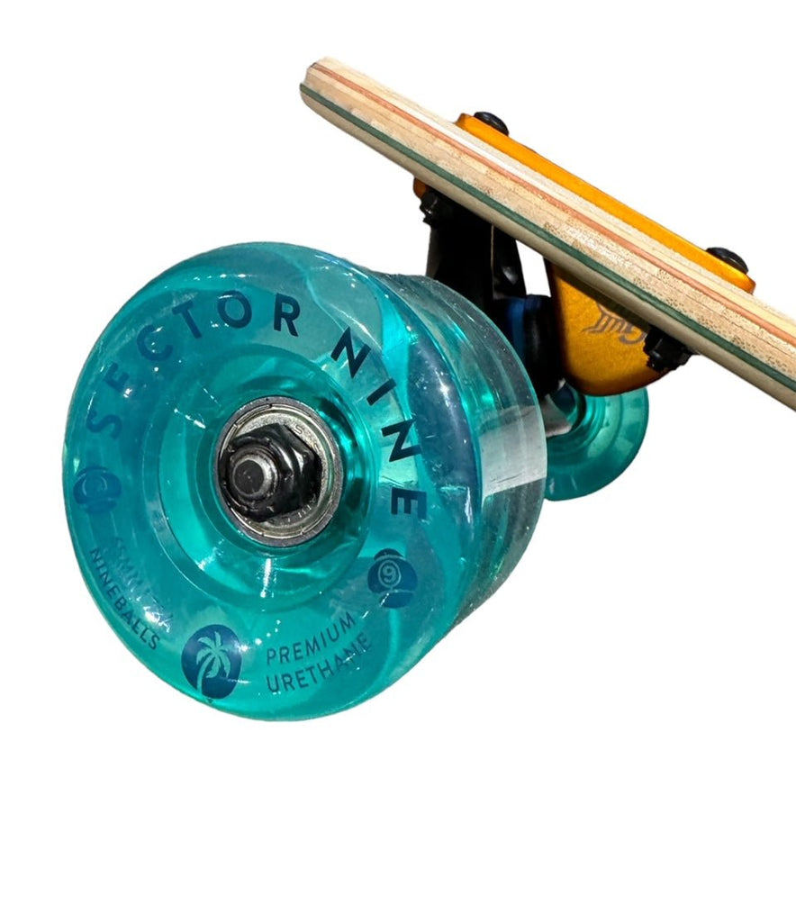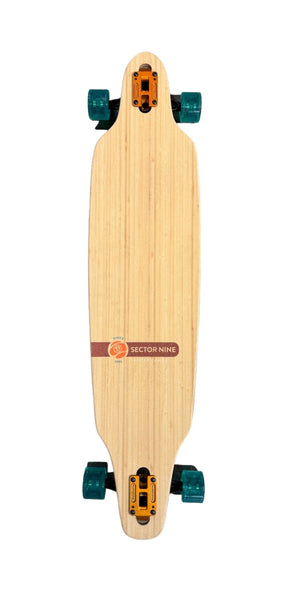 Seeking good vibes and classic lines? As our best-selling board, the Lookout has been delivering these for quite some time. Comes With Sector 9 65mm 78A Nineballs wheels to keep your speed and easily roll over cracks and any stray rocks that get in your way. The drop-thru truck mounts make the board lower, easier to push, and more stable. The bamboo construction keeps the board light, gives it a nice dampening flex, and is a sustainable resource. Long-time Sector 9 contributing artist, Nate Reifke has once again come through with a breathtaking graphic.