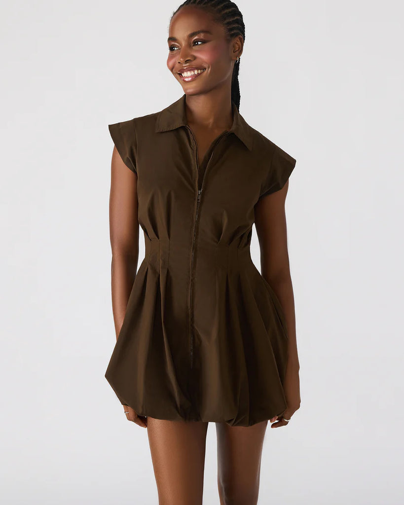The DYANNE dress is a stylish mini dress featuring a zip front and bubble hem in tech nylon. With a collared neckline, this dress is perfect for any occasion and provides a modern, chic look. Made with high-quality materials, it offers both comfort and durability. Get ready to turn heads and stand out in this must-have dress.