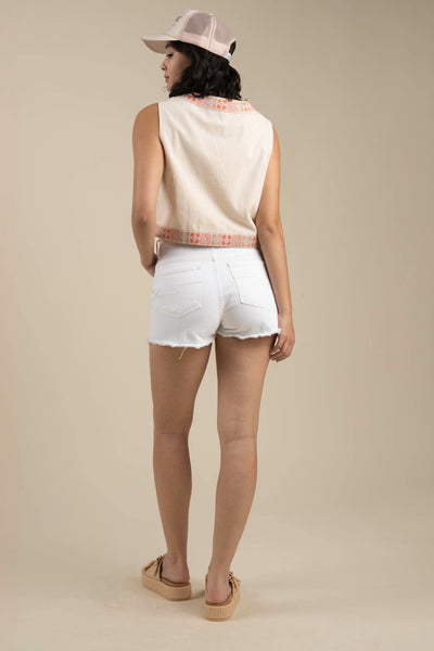 A little funky, a little vintage, and a whole lotta fun. The Frontier Vest isn’t here to blend in—it’s here to turn heads. With a cropped, boxy fit, bold floral embroidery, and custom trim detailing, this one’s got just the right amount of throwback flair. Wear it over a lace tank, crop tee, or one of our embroidered blouses, and suddenly, you’re all set to stand out!