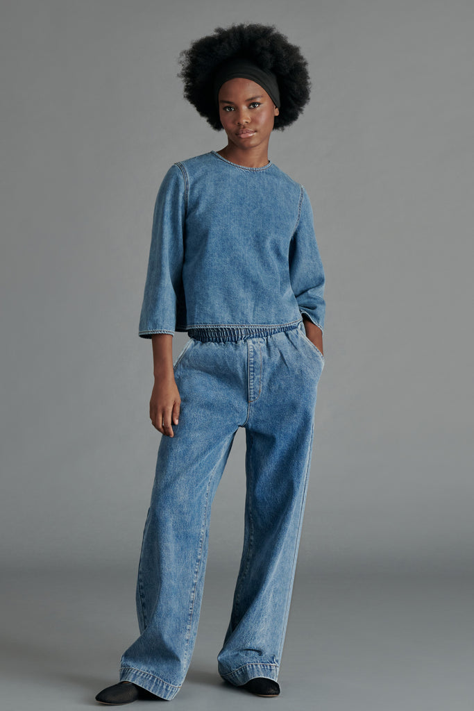 The Gilda Pant offers unparalleled comfort and style with its elasticated waist and baggy denim design. Enjoy a perfect fit and effortless style all day long. Upgrade your wardrobe with this must-have piece for a chic and comfortable look.