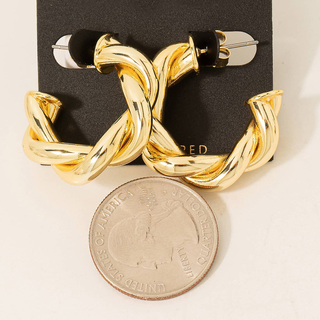 Gold Dipped Twisted Metallic Hoop Earrings: G