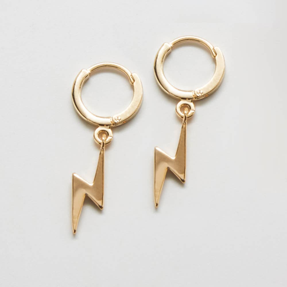 Grab some of these everyday gold huggies that features a geometric lightning bolt charm and a shiny gold finish.