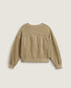 - Offset sleeves with fray trim for a vintage look