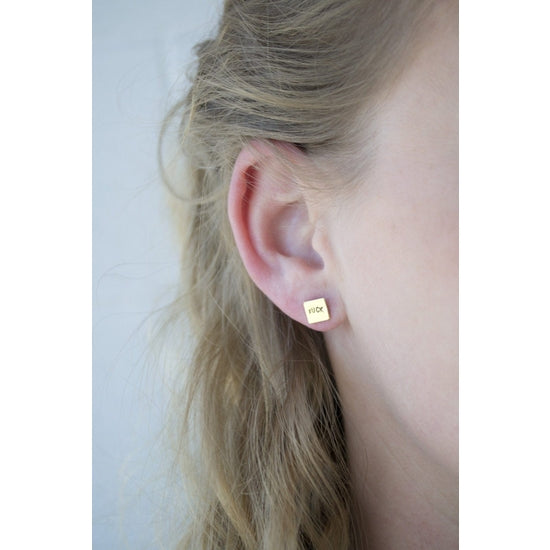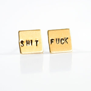 Hand Stamped, square shaped, earrings that read "SHIT FUCK" because let's face it, you swear like a sailor and you might as well warn people. -All GTM earrings are made with US-made Surgical Grade A TITANIUM earring wire/posts. Titanium is truly hypoallergenic and contains no traces of nickel.