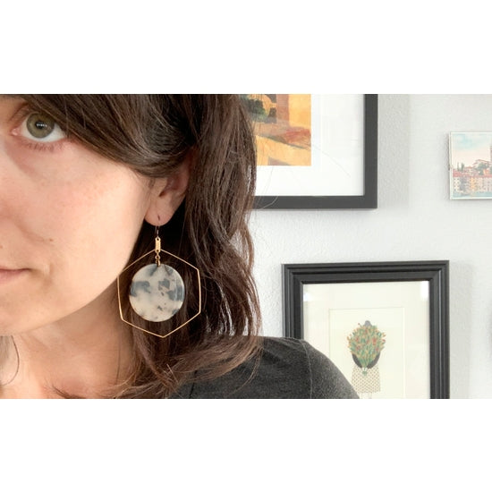 Super light + on trend acetate dangly earrings in a tortoise blonde hue. Earring Hooks are surgical grade A titanium--100% hypoallergenic + nickel free