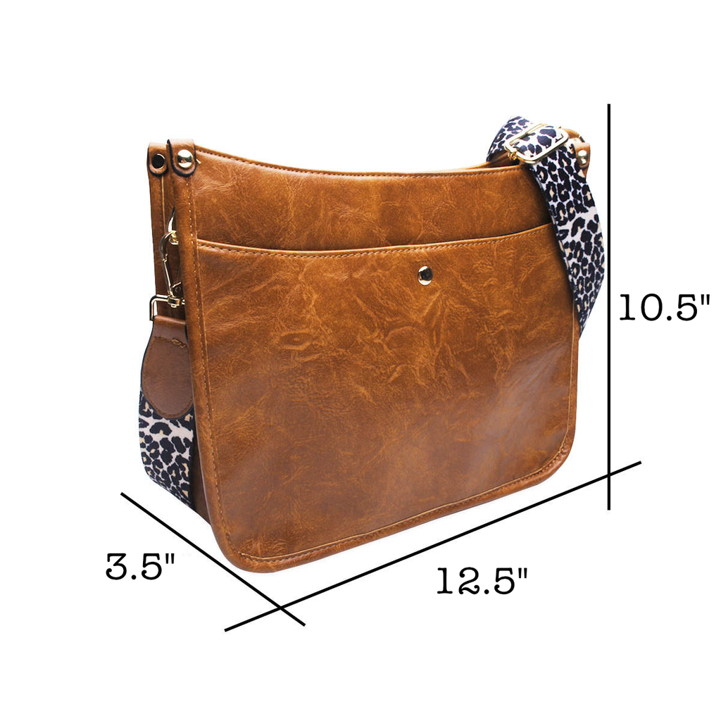 Body - 12.5" W x 10.5" H x 3.5" D * Top Zipper Closure * Outside zipper pocket * Interior Pocket * Shoulder Strap - Shortest 30" Buckle to Buckle, Longest 50" Buckle to Buckle * Gold Hardware