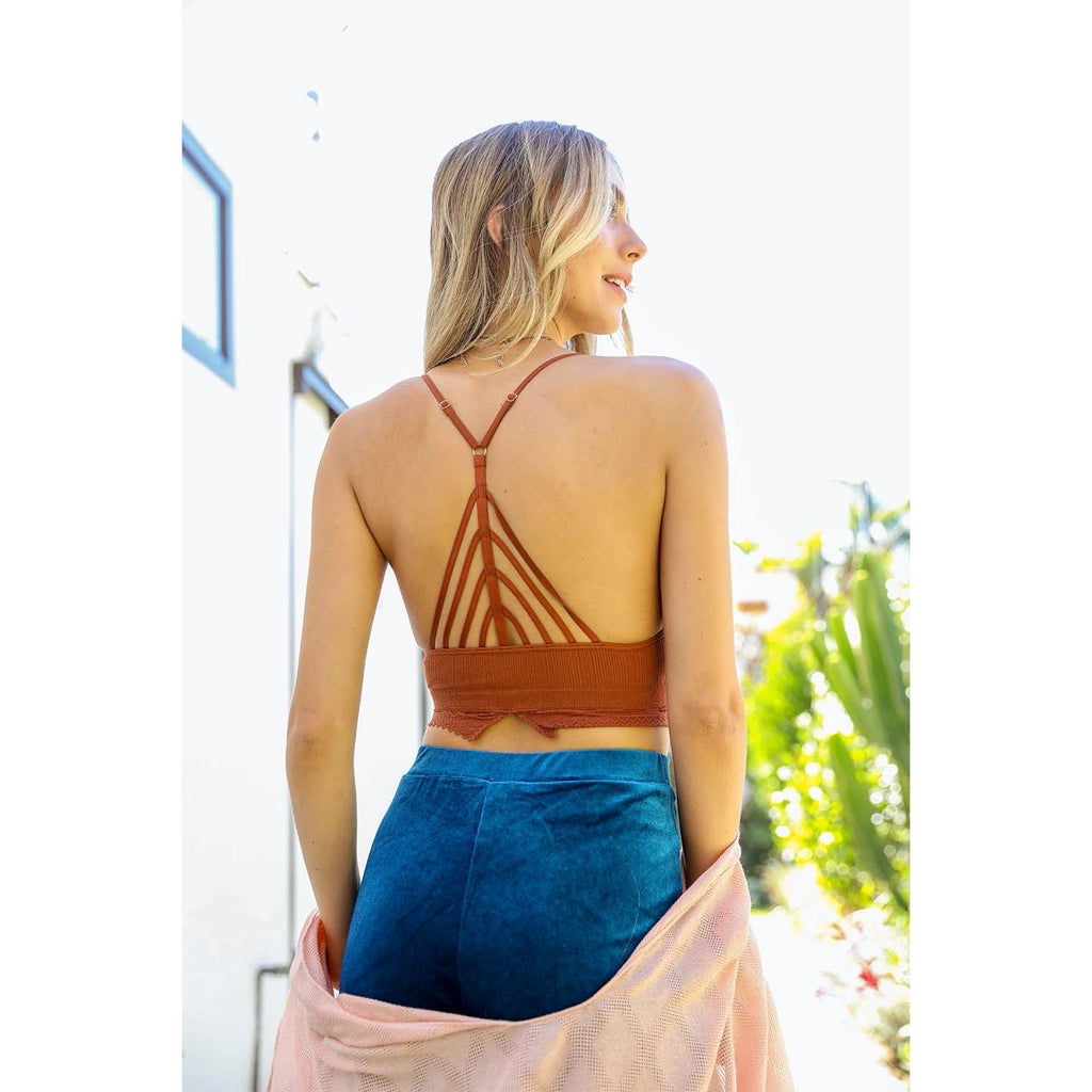 High Neck Crochet Lace Trim Bralette Stitched Care Label Tag