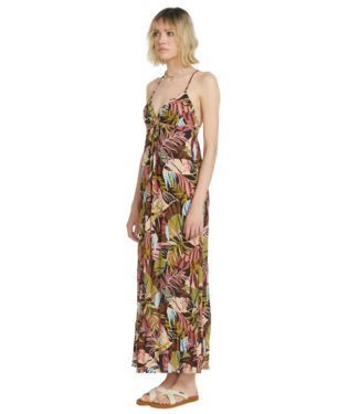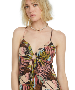 - Allover printed maxi dress with triangle cup bodice, with keyhole opening at center front and elasticized back chest opening