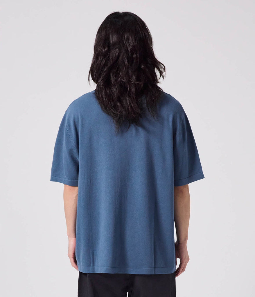 Crafted in a premium cotton-nylon blend (80% cotton 20% nylon) flat knit . Featuring front graphic embroidery on hip, button closure, and knitted contrast placket and collar.